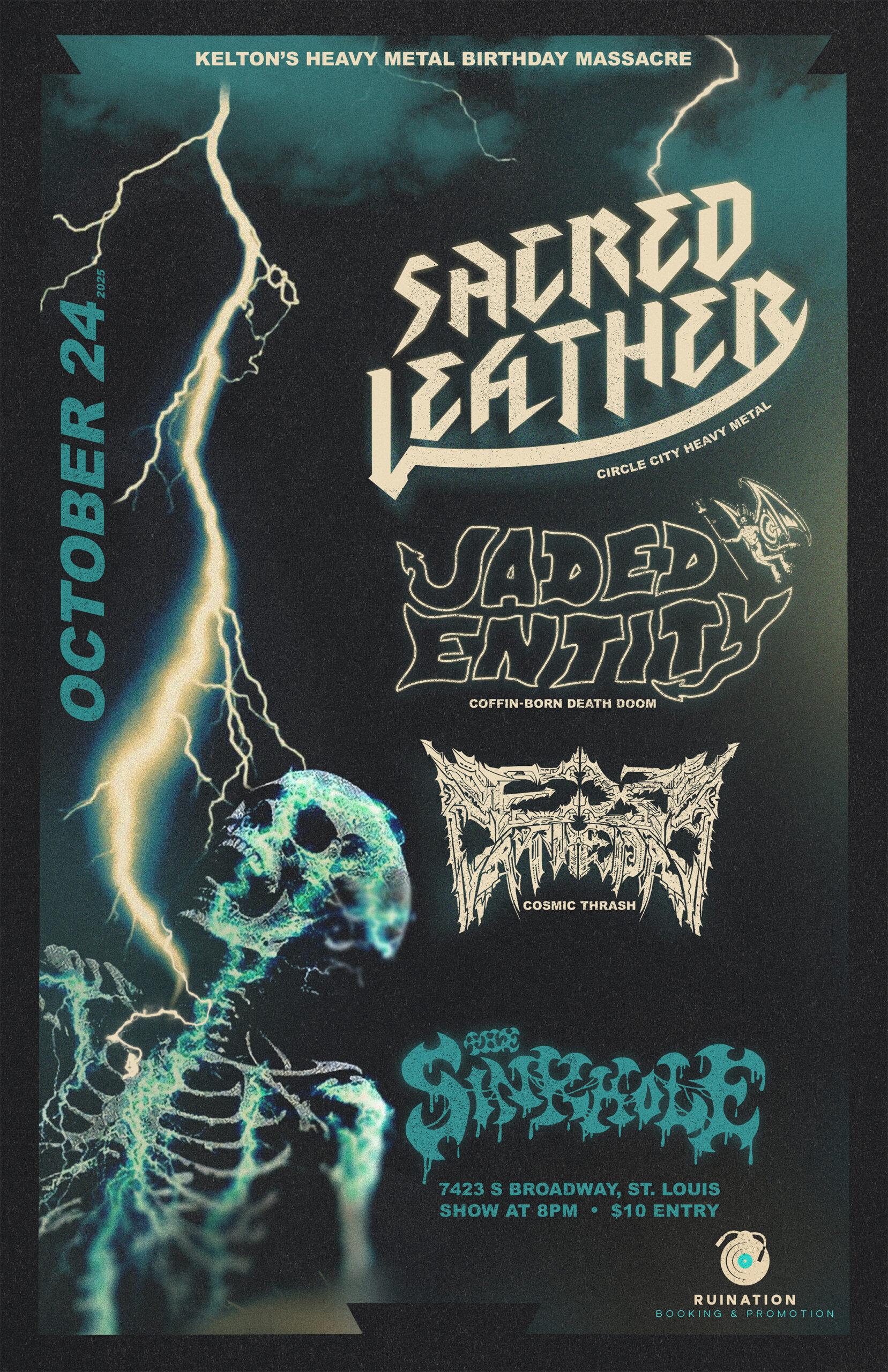 ![]() Ruination Booking Presents: Sacred Leather Jaded Entity Ex Cathedra (STL) 730pm - doors |